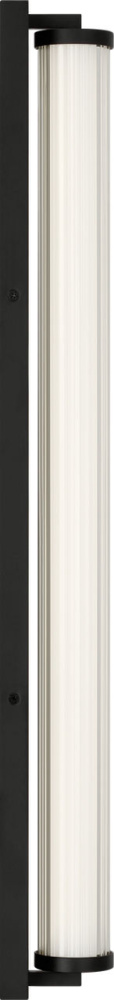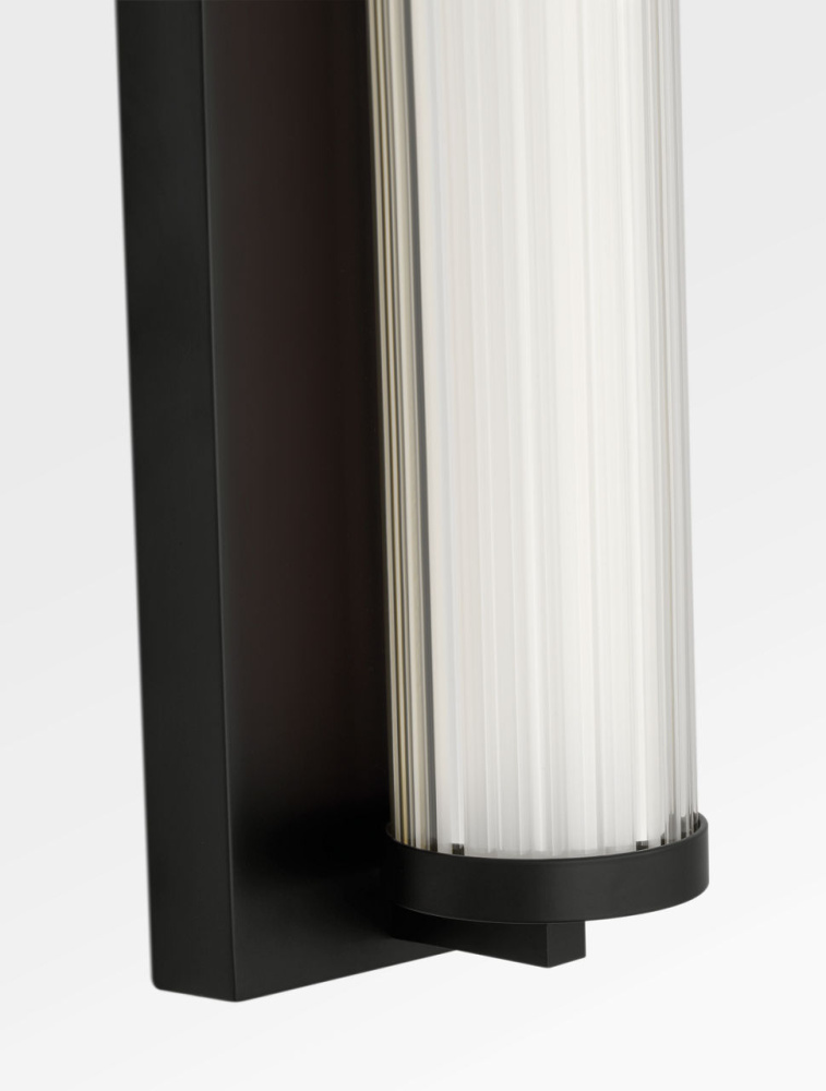 The Weston 34" Vanity combines linear symmetry with material depth, featuring a ribbed glass lens framed by a full-length metal backplate. Dedicated LED technology delivers efficient, ambient light while the textured diffuser enhances clarity and softens glare. suited for horizontal mounting in bathrooms and powder rooms where diffused illumination and visual structure are required.