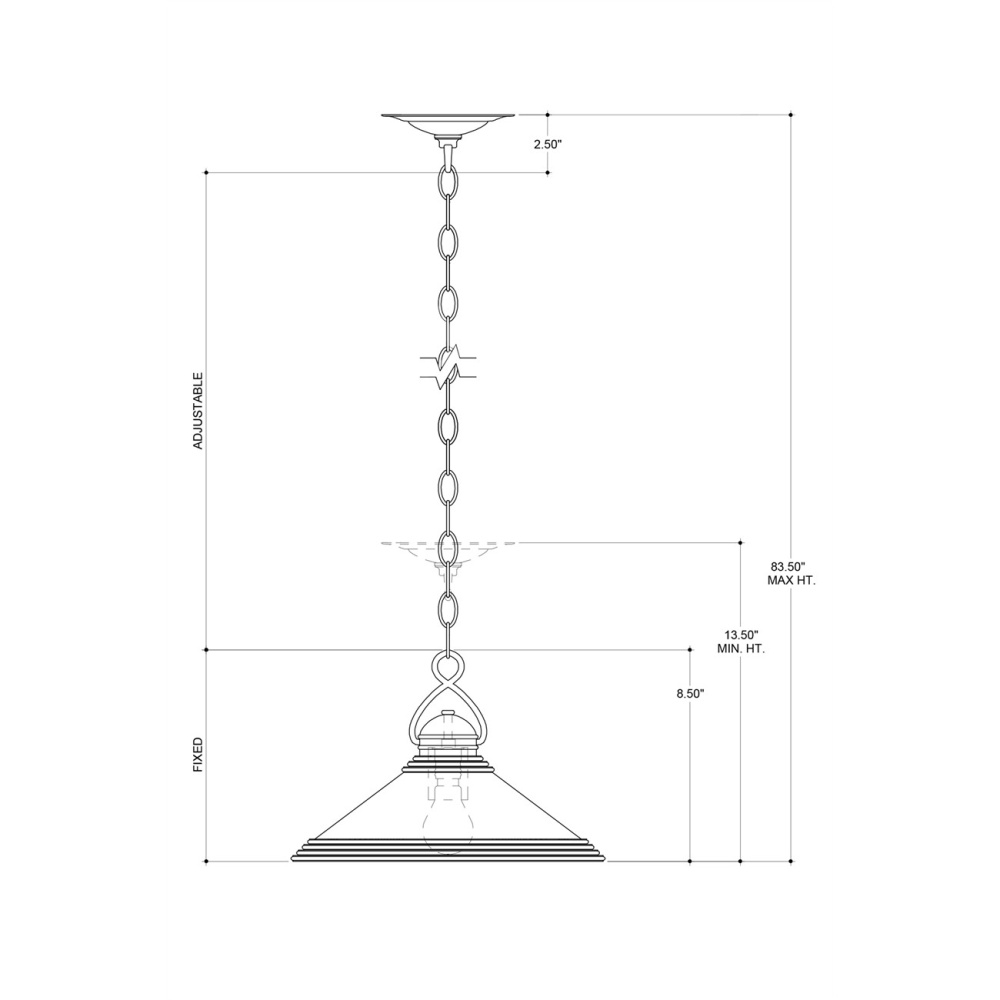 The Weybright Pendant references vintage industrial style. Made of brass in a vintage brass finish, the design notes that make this brass pendant so special include the sophisticated shape of the hook that fastens the fixture to the chain and the ribbed details on the shade. Adjustable from 13.5" to 83.5" with use of included chain/rod kit/cable. If your space calls for a longer drop, additional chain/rods/cable is available for purchase.