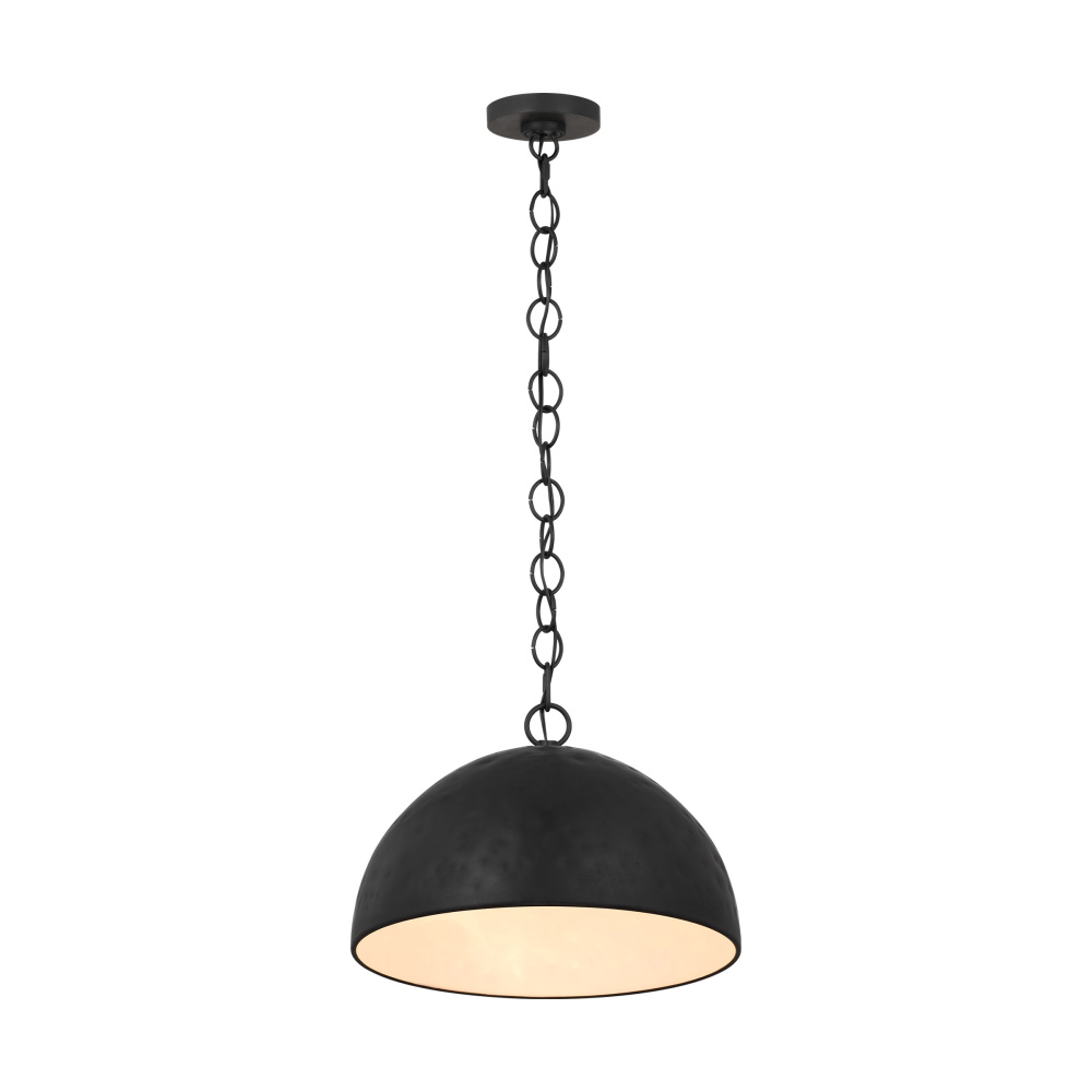 Handcrafted of brass and dramatically scaled, our pendant is a statement piece. Its hand-hammered texture softens. The rounded industrial form and the warm finishes reflect light beautifully. This industrial and bold 1-light metal dome pendant is a marvel perfect for modern or industrial rooms.