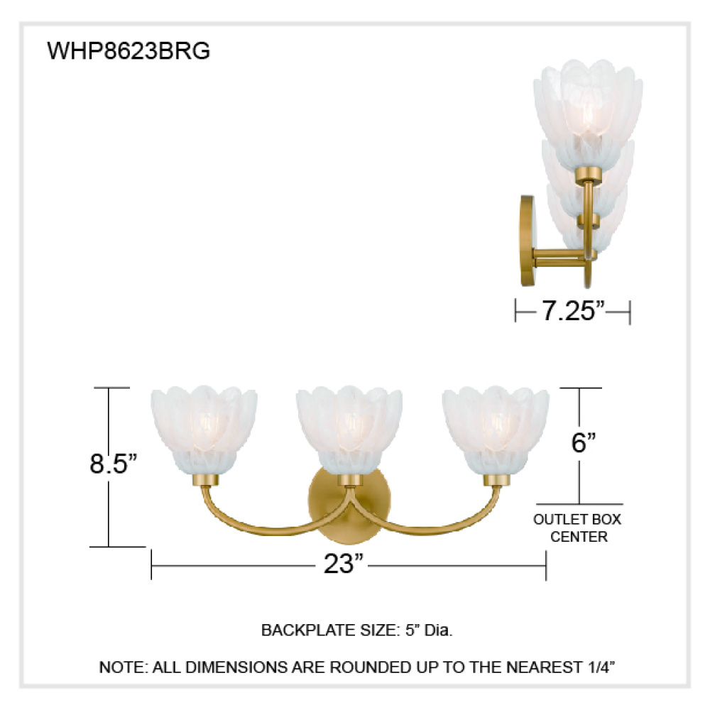 Quoizel WHP8623BRG - Whitecap 3-Light Brushed Gold Vanity Light