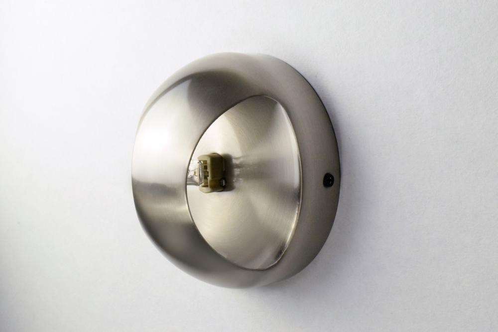 Modern art meets modern light, the Wink collection combines form and function in a unique, wall-mounted hemisphere. Powerful, yet hidden, Xenon lamps spill light through elliptical windows in the dome refracting and diffusing the warm glow. In Polished Chr