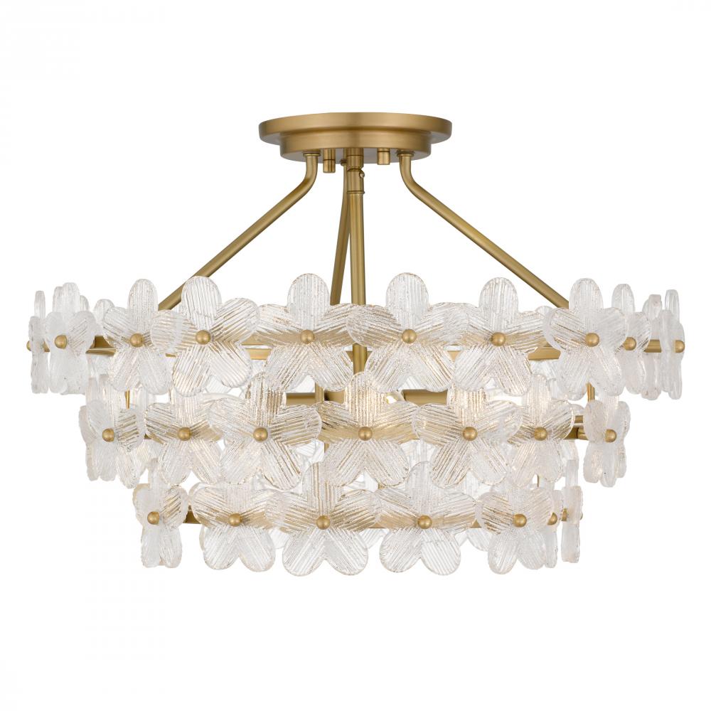 The Wright Collection is a celebration of whimsy and elegance. Each piece pairs a radiant brushed gold finish with delicate clear textured glass shaped like blooming petals, casting a soft, sparkling glow. Whether illuminating a dining room, entryway, or k