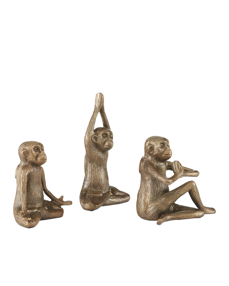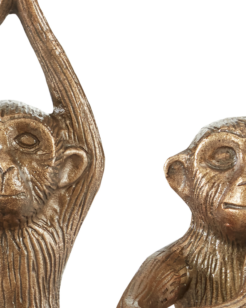 The characters in the Zen Brass Monkey Set are practicing an ancient art form as they take great care in making their gestures. But this doesn't mean the trio of gold sculptures in an antique-brass finish isn't seriously cute! They are made of cast aluminum with striations along their surfaces that mimic fur. This and their expressions make these animal sculptures read as authentic.
