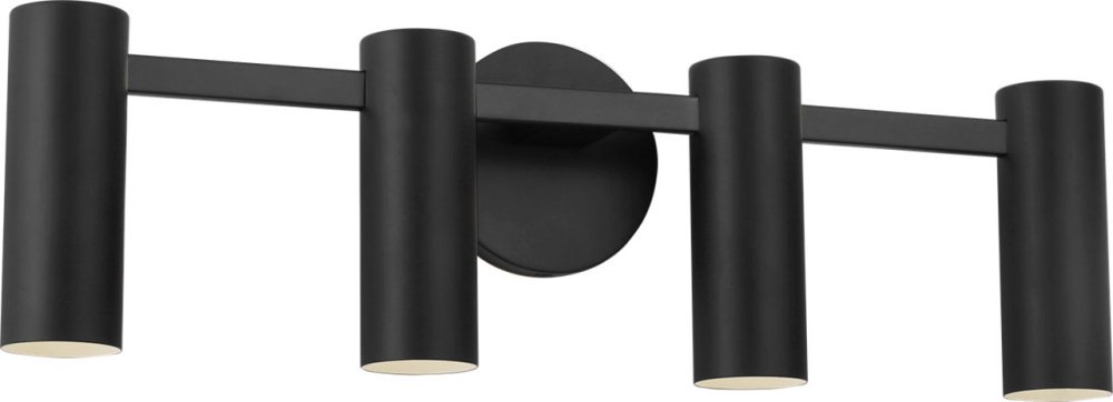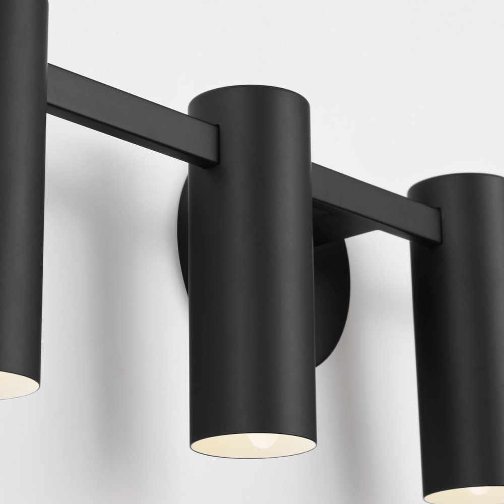 The Zentro 4-Light Vanity adapts the series’ cylindrical shades for wall-mounted use. The evenly spaced layout delivers balanced illumination across mirrors and wall surfaces, making it a practical solution for bathrooms and powder rooms.