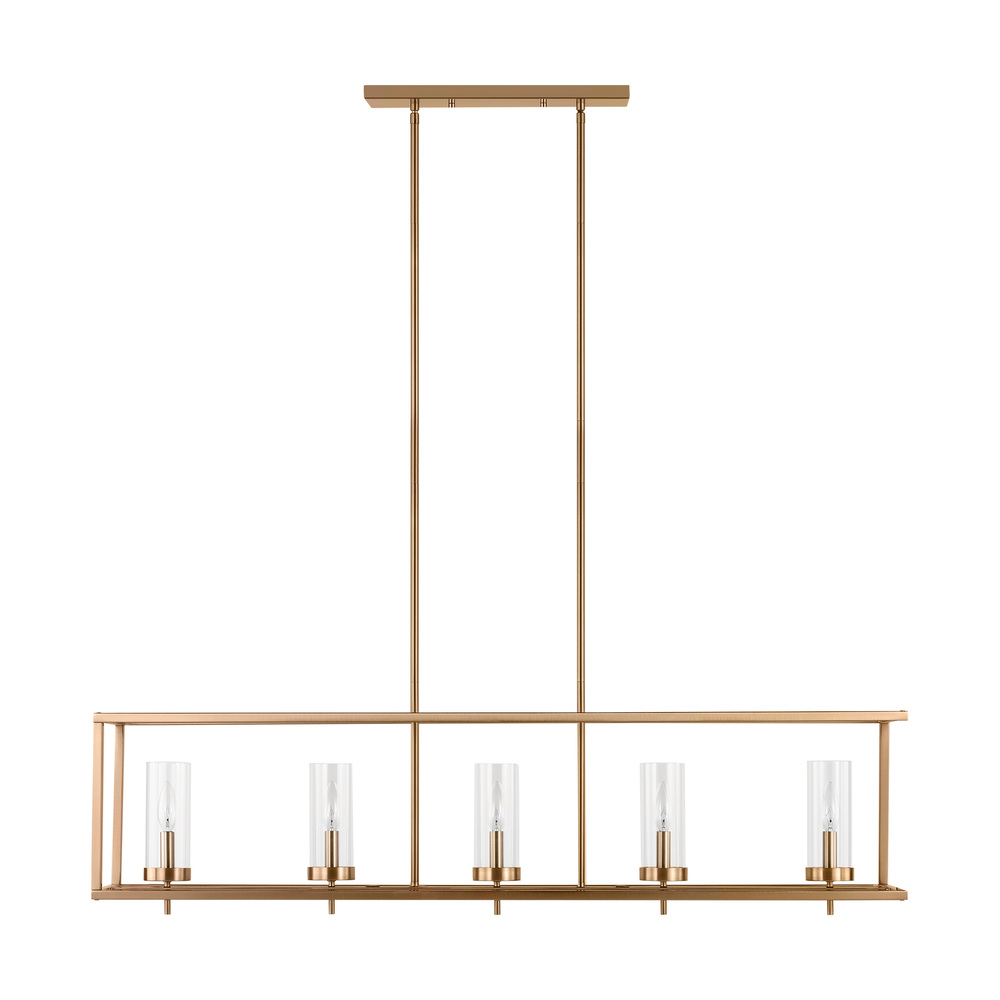 The Zire five light linear chandelier in Satin Brass is the perfect way to achieve your desired fashion or functional needs in your home. Zire embodies simple clean lines in three finishes that strike a perfect balance of elegant yet minimalist design.